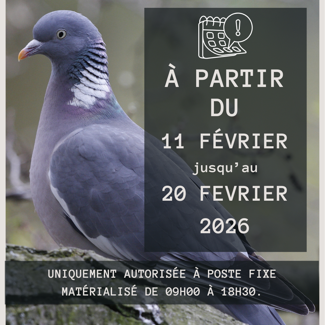 Dans le cadre de l’arrêté préfectoral 2025/2026, des dispositions spécifiques encadrent la chasse du pigeon ramier en fin de saison.