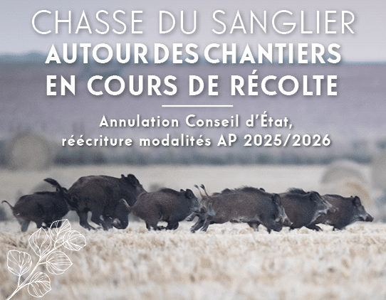 Chasse du sanglier autour des chantiers en cours de récolte : Annulation Conseil d’État, réécriture modalités AP 2025/2026
