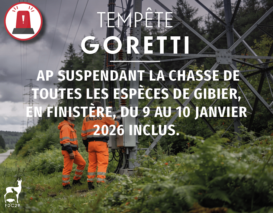 La Préfecture du Finistère a décidé de prendre un arrêté préfectoral suspendant la chasse de toutes les espèces de gibier, dans tout le département du Finistère, du 9 au 10 janvier 2026 inclus.