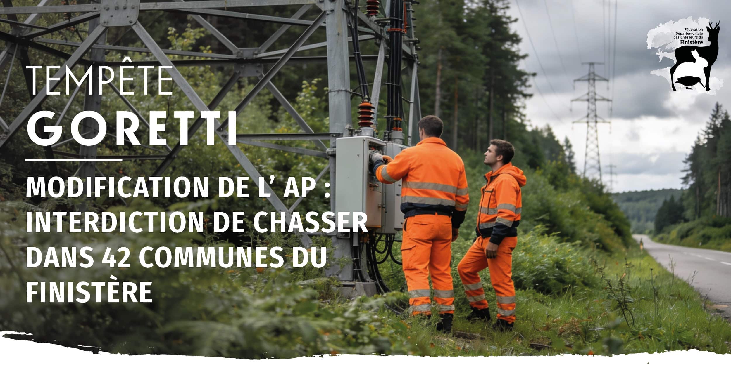 Suite à l’épisode de la tempête Goretti, la Préfecture du Finistère avait initialement pris un arrêté préfectoral suspendant la chasse de toutes les espèces de gibier sur l’ensemble du département, les 9 et 10 janvier 2026 inclus, afin de prévenir les risques liés aux dégâts occasionnés et de permettre l’intervention des agents d’ENEDIS sur le réseau électrique.