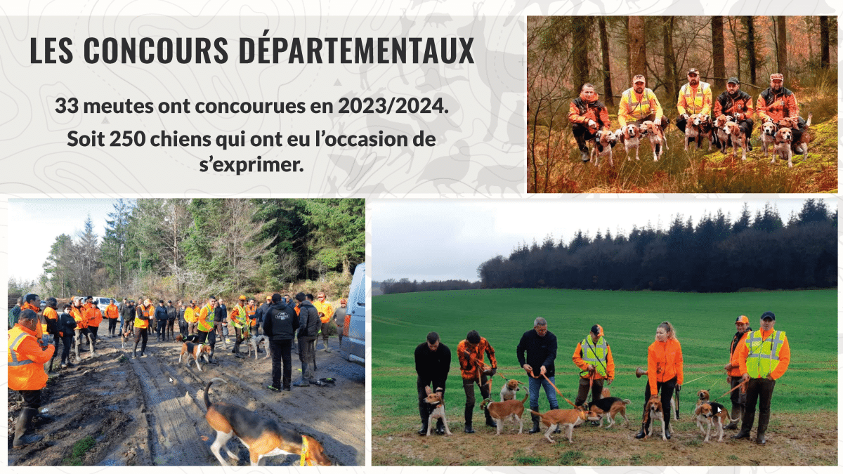 - l’organisation annuelle de concours de meutes et d’épreuves de travail pour chiens courants ;