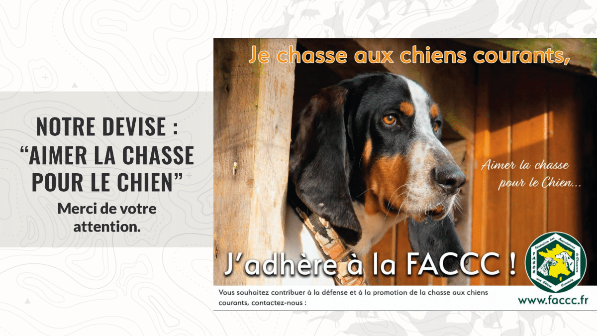 Chaque AFACCC départementale ou bi-départementale est ouverte à tous les utilisateurs / amateurs de chiens courants ou de chiens chassant comme tels, qu’ils en soient ou non propriétaires. Du fait de leur adhésion, les membres acceptent, sans réserve les statuts de l’association et la charte comportementale de la Fédération des Associations de Chasseurs aux Chiens courants (FACCC). Les cotisations sont exigibles au plus tard le 31 mars de l’année, l’exercice social démarrant le 1er janvier pour se terminer le 31 décembre. Des conditions d’adhésion avantageuses sont offertes aux jeunes chasseurs et aux familles.