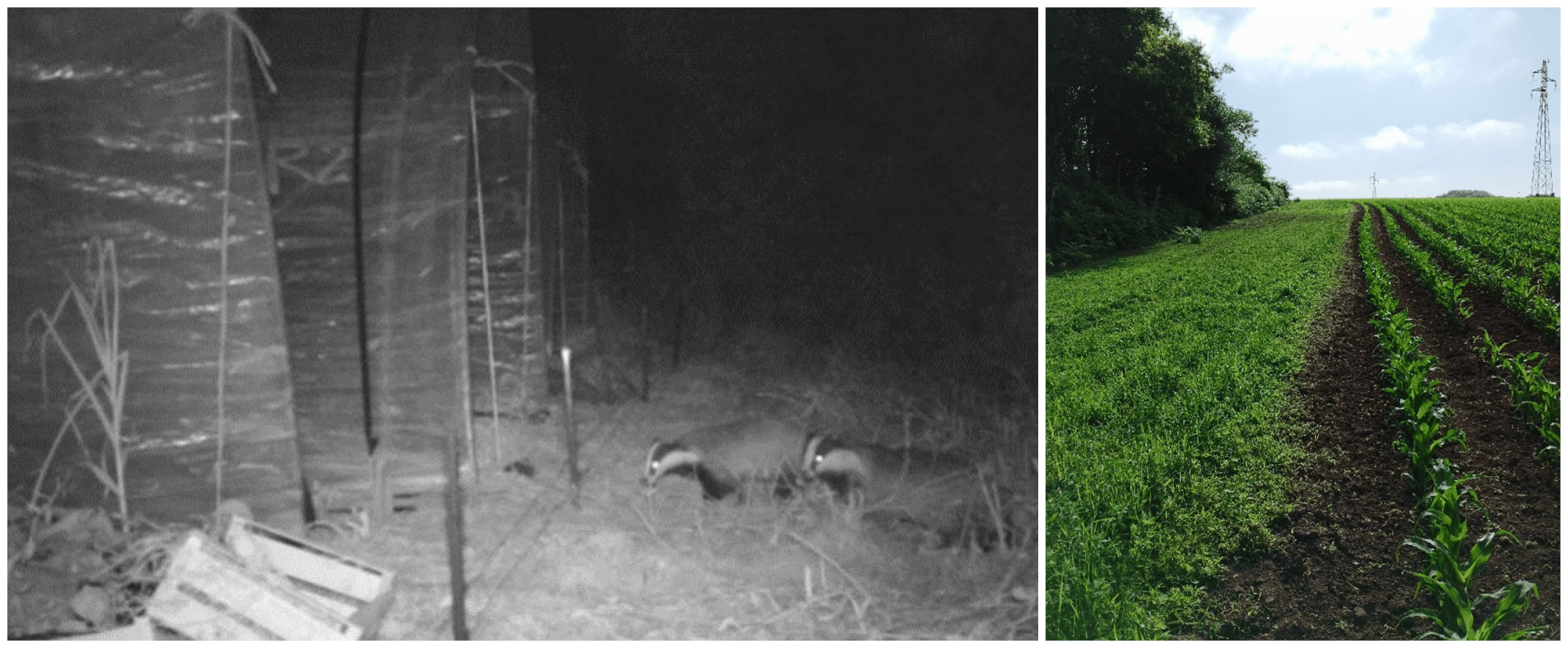 Parmi ces solutions, des tests sont en cours contre des dégâts de lapins de garenne, de lièvres et de blaireaux dans divers types de culture. Nous sommes particulièrement intéressés par l’effet des bords de champs pour la prévention des dégâts. Ci-dessous, une bande enherbée, installée en bordure d’une culture de maïs, a permis de la protéger des dommages commis par des lapins de garenne installés dans le talus.