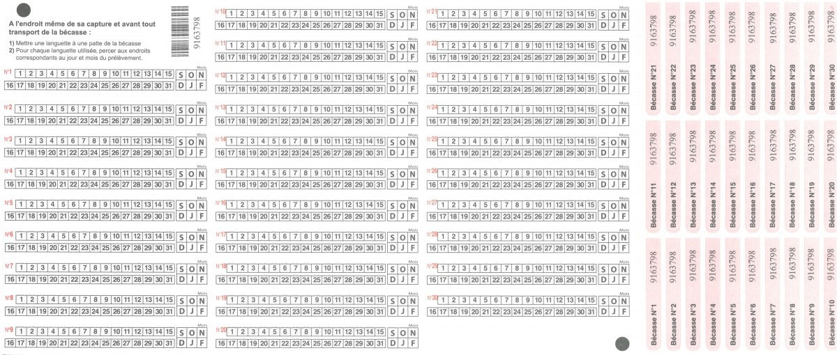 Carnet de prélèvement national Bécasse Papier (CPB)